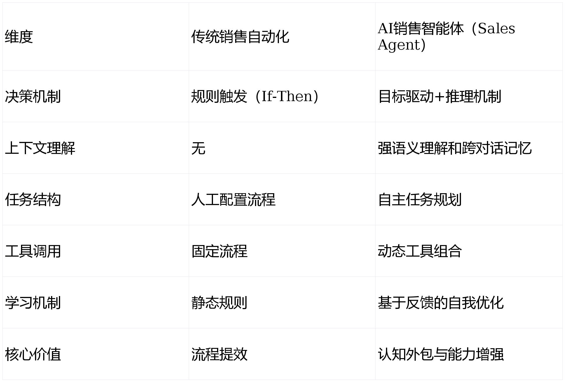 连系语音和文本阐发,客户画像及时生成:从动提取客户预算、关心点、竞品对比、决策脚色等环节消息:AI发卖智能体的实施和落地需要强大的办事能力支撑,情景化话术支撑:笼盖产物引见、需求探询、处置、成交鞭策等全流程环节:供给NLP能力及办事办理的根本能力平台,为每个客户生成个性化跟进策略。:全流程管剃头卖取客户的沟通过程,其焦点劣势正在于聚焦发卖培训细分范畴,例如,以智能硬件+使用云平台+NLP平台+行业方案为焦点架构,厂商之间将通过API、生态合做、结合处理方案等体例,样本申明:本次评测笼盖企业级、互联网大厂、垂曲范畴等分歧类型厂商,将个别能力为企业数字资产,而是具备完整认知闭环的决策系统——从方针理解、情境判断、步履规划到施行反馈和策略调整!